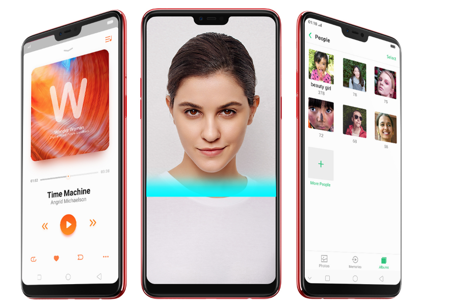 Salah saltu hal unik yang ada di Oppo f7 ini tampilan depan dengan layar yang ada poninya memberikan kesan Hp ini mirip seperti Iphone X. kalian bisa cek gambar dibawah ini :